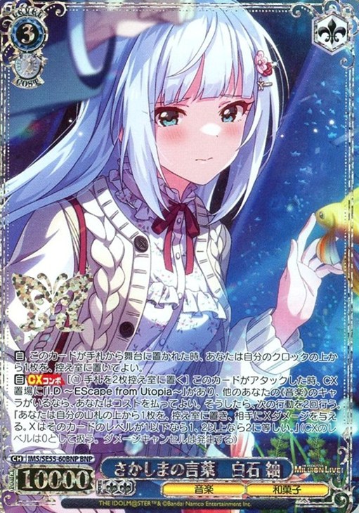 【自】【CXコンボ】[(1) 手札を2枚控え室に置く] このカードがアタックした時、CX置場に「I.D ~EScape from Utopia~」があり、他のあなたの《音楽》のキャラがいるなら、あなたはコストを払ってよい。そうしたら、次の行動を2回行う。『あなたは自分の山札の上から1枚を、控え室に置き、相手にXダメージを与える。Xはそのカードのレベルが1以下なら1、2以上なら2に等しい。』(CXのレベルは0として扱う。ダメージキャンセルは発生する)