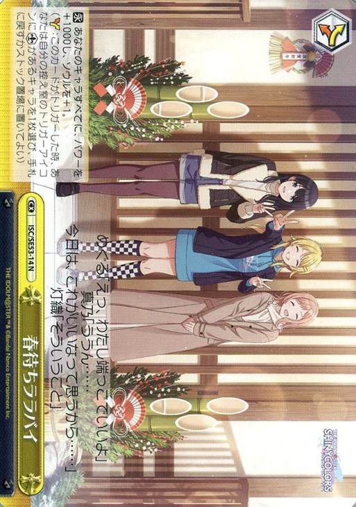 (チョイス:このカードがトリガーした時、あなたは自分の控え室のトリガーアイコンにソウル+1があるキャラを1枚選び、手札に戻すかストック置場に置いてよい)
