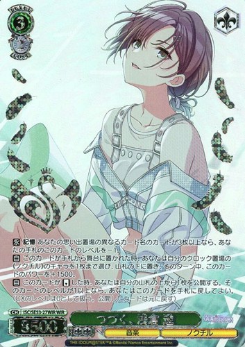 【自】 このカードが手札から舞台に置かれた時、あなたは自分のクロック置場の《ノクチル》のキャラを1枚まで選び、山札の下に置き、そのターン中、このカードのパワーを+1500。
