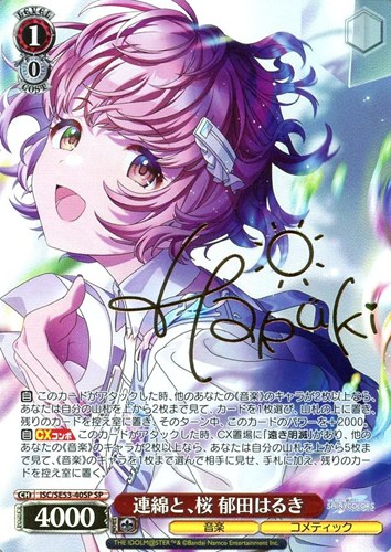 【自】【CXコンボ】 このカードがアタックした時、CX置場に「遠き明滅」があり、他のあなたの《音楽》のキャラが2枚以上なら、あなたは自分の山札を上から5枚まで見て、《音楽》のキャラを1枚まで選んで相手に見せ、手札に加え、残りのカードを控え室に置く。