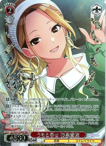 【自】 チェンジ [(2) このカードを控え室に置く] あなたのCXフェイズの始めに、あなたのレベルが2以上なら、あなたはコストを払ってよい。そうしたら、あなたは自分の手札の「メイ・ビー 和泉愛依」を1枚まで選び、このカードがいた枠に置き、そのターン中、そのキャラのパワーを+1000。