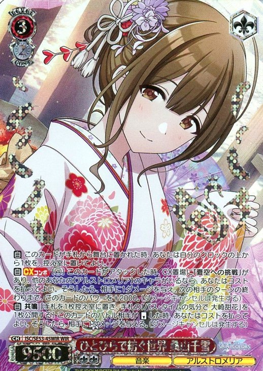 【自】【CXコンボ】[(1)] このカードがアタックした時、CX置場に「夏空への挑戦」があり、他のあなたの《アルストロメリア》のキャラがいるなら、あなたはコストを払ってよい。そうしたら、相手に1ダメージを与え、次の相手のターンの終わりまで、このカードのパワーを+2000。(ダメージキャンセルは発生する)