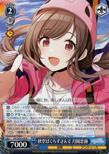 【自】【クロック】 アラーム このカードがクロックの1番上にあり、あなたの《音楽》のキャラが4枚以上なら、あなたのCXフェイズの始めに、あなたは自分のキャラを1枚選び、そのターン中、次の能力を与える。『【自】 このカードが【リバース】した時、このカードのバトル相手のレベルが相手のレベルより高いなら、あなたは相手のクロックの上から1枚を、控え室に置いてよい。そうしたら、あなたはそのキャラをクロック置場に置く。』