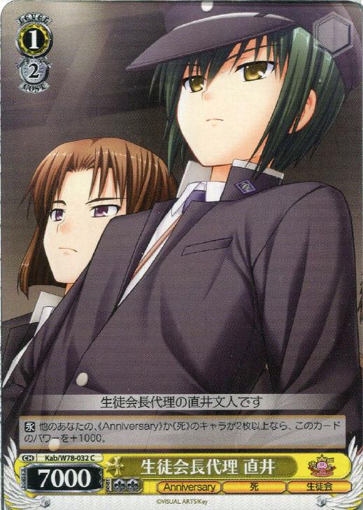 - 【永】 他のあなたの、《Anniversary》か《死》のキャラが2枚以上なら、このカードのパワーを+1000。