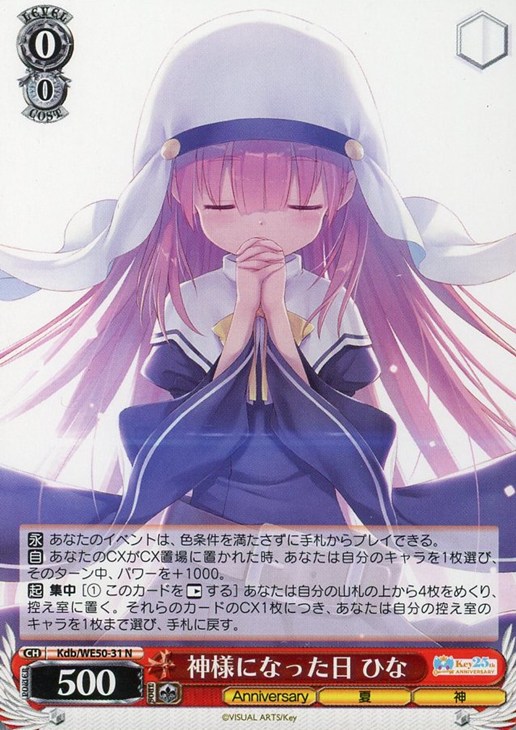 【自】 あなたのCXがCX置場に置かれた時、あなたは自分のキャラを1枚選び、そのターン中、パワーを+1000。