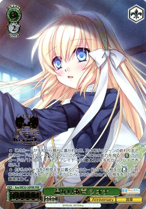 【自】[手札のキャラを2枚控え室に置く] このカードのバトル相手が【リバース】した時、あなたはコストを払ってよい。そうしたら、あなたはそのバトル相手をクロック置場に置く。
