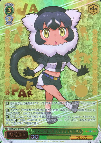 - 【永】他の自分の後列の《フレンズ》のキャラ1枚につき、このカードのパワー+1000。 【自】このカードが手札から舞台に置かれた時、自分の山札を上から2枚まで見て、山札の上に元の順番で置く。 【自】[1コスト]このカードが手札から舞台に置かれたターン中、このカードのバトル相手がリバースした時、コストを払ってよい。そうしたら、そのキャラをクロック置場に置く。