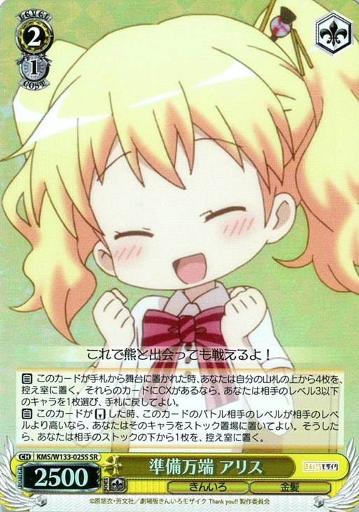 【自】 このカードが【リバース】した時、このカードのバトル相手のレベルが相手のレベルより高いなら、あなたはそのキャラをストック置場に置いてよい。そうしたら、あなたは相手のストックの下から1枚を、控え室に置く。