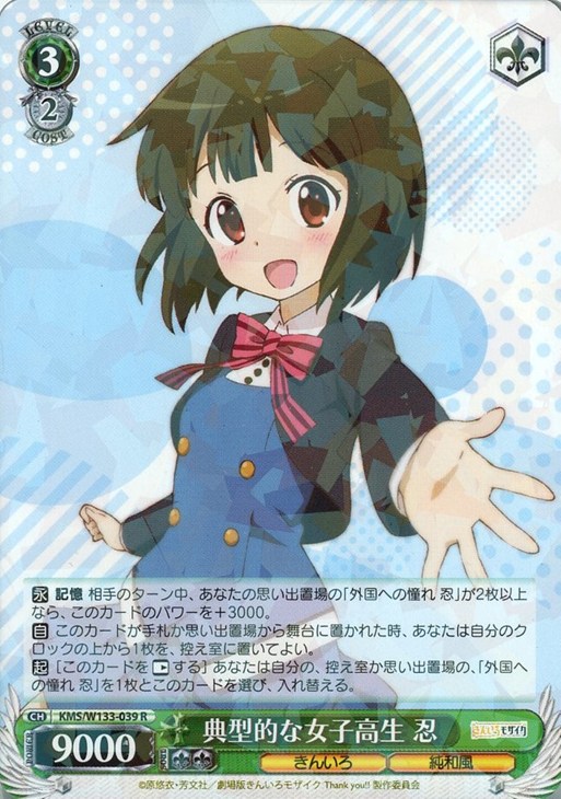 【起】[このカードを【レスト】する] あなたは自分の、控え室か思い出置場の、「外国への憧れ 忍」を1枚とこのカードを選び、入れ替える。