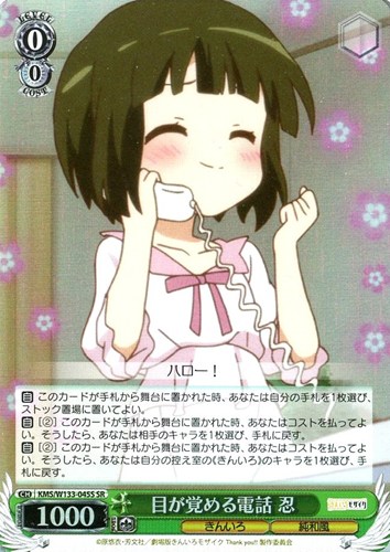【自】[(2)] このカードが手札から舞台に置かれた時、あなたはコストを払ってよい。そうしたら、あなたは自分の控え室の《きんいろ》のキャラを1枚選び、手札に戻す。
