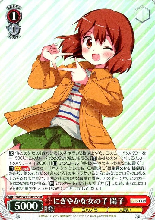 【自】【CXコンボ】 このカードがアタックした時、CX置場に「面倒見のいい姉御肌」があり、他のあなたの《きんいろ》のキャラがいるなら、あなたは自分の山札を上から2枚まで見て、山札の上に好きな順番で置き、そのターン中、このカードは次の能力を得る。『【自】 このカードのバトル相手が【リバース】した時、あなたは自分の控え室のキャラを1枚選び、手札に戻してよい。』