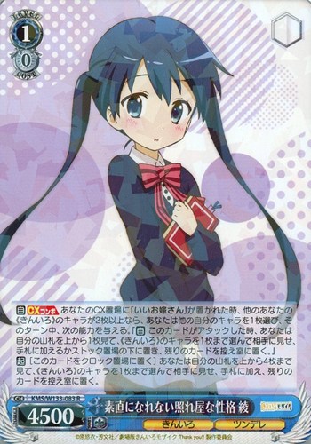 【起】[このカードをクロック置場に置く] あなたは自分の山札を上から4枚まで見て、《きんいろ》のキャラを1枚まで選んで相手に見せ、手札に加え、残りのカードを控え室に置く。