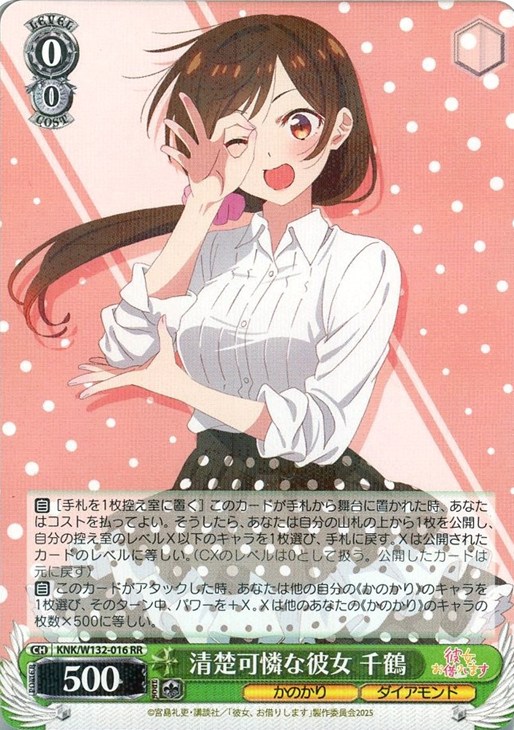 【自】 このカードがアタックした時、あなたは他の自分の《かのかり》のキャラを1枚選び、そのターン中、パワーを+X。Xは他のあなたの《かのかり》のキャラの枚数×500に等しい。