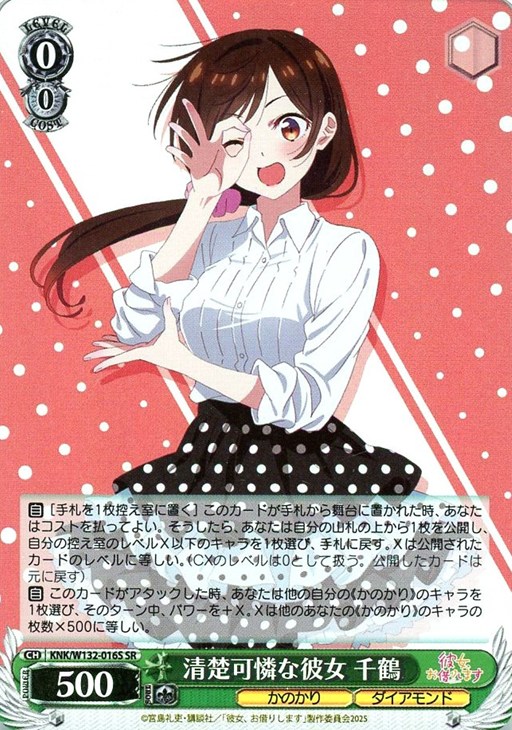 【自】 このカードがアタックした時、あなたは他の自分の《かのかり》のキャラを1枚選び、そのターン中、パワーを+X。Xは他のあなたの《かのかり》のキャラの枚数×500に等しい。
