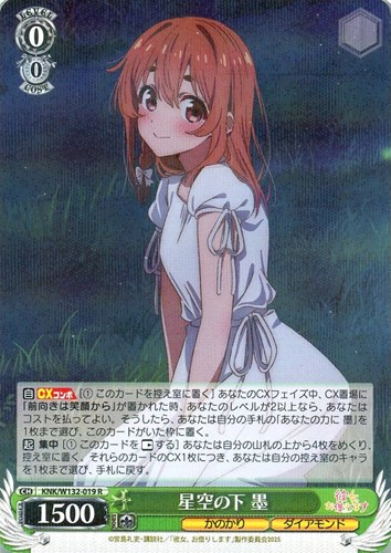 【自】【CXコンボ】[(1) このカードを控え室に置く] あなたのCXフェイズ中、CX置場に「前向きは笑顔から」が置かれた時、あなたのレベルが2以上なら、あなたはコストを払ってよい。そうしたら、あなたは自分の手札の「あなたの力に 墨」を1枚まで選び、このカードがいた枠に置く。