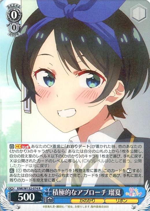 【起】[(1) 他のあなたの舞台のキャラを1枚控え室に置き、このカードを【レスト】する] あなたは自分の山札を上から2枚まで見て、カードを1枚まで選び、手札に加え、残りのカードを控え室に置く。