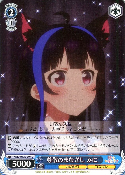 【永】 応援 このカードの前のあなたのレベル3以上のキャラすべてに、パワーを+2000。