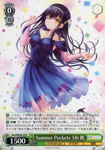 【起】 共鳴 [(1) 手札の「“夏の思い出”鴎」を1枚公開し、このカードを【レスト】する] あなたは自分の山札を上から3枚まで見て、《Anniversary》か《サマポケ》のキャラを1枚まで選んで相手に見せ、手札に加え、残りのカードを控え室に置く。