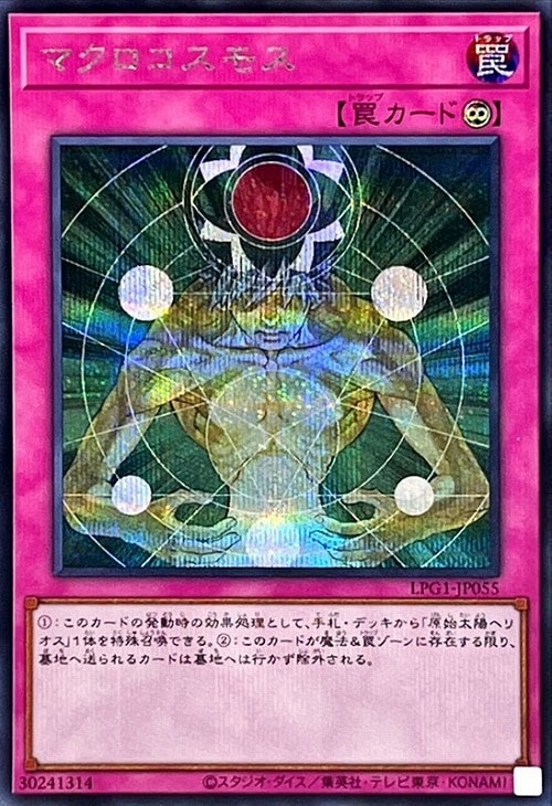 - ①:このカードの発動時の効果処理として、手札・デッキから「原始太陽ヘリオス」1体を特殊召喚できる。②:このカードが魔法&罠ゾーンに存在する限り、墓地へ送られるカードは墓地へは行かず除外される。