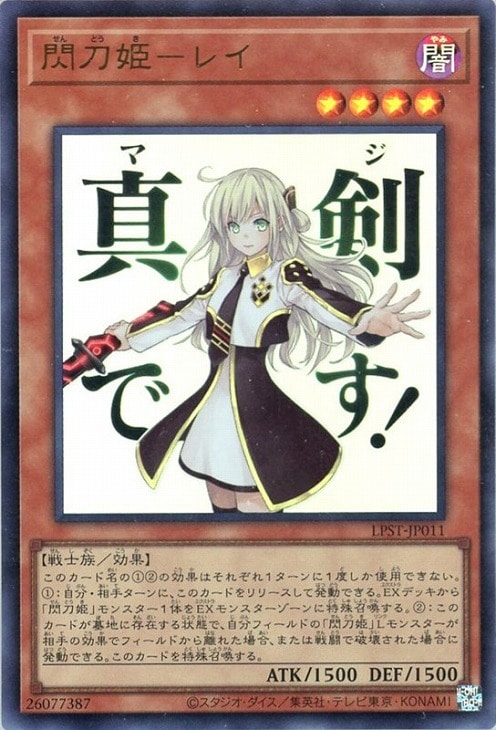 - このカード名の①②の効果はそれぞれ1ターンに1度しか使用できない。①:自分・相手ターンに、このカードをリリースして発動できる。EXデッキから「閃刀姫」モンスター1体をEXモンスターゾーンに特殊召喚する。②:このカードが墓地に存在する状態で、自分フィールドの「閃刀姫」Lモンスターが相手の効果でフィールドから離れた場合、または戦闘で破壊された場合に発動できる。このカードを特殊召喚する。