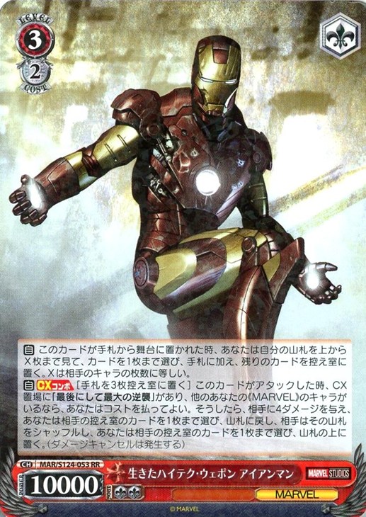 【自】【CXコンボ】[手札を3枚控え室に置く] このカードがアタックした時、CX置場に「最後にして最大の逆襲」があり、他のあなたの《MARVEL》のキャラがいるなら、あなたはコストを払ってよい。そうしたら、相手に4ダメージを与え、あなたは相手の控え室のカードを1枚まで選び、山札に戻し、相手はその山札をシャッフルし、あなたは相手の控え室のカードを1枚まで選び、山札の上に置く。(ダメージキャンセルは発生する)