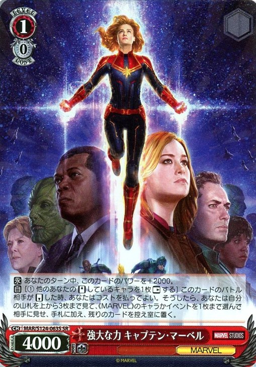 【自】[(1) 他のあなたの【スタンド】しているキャラを1枚【レスト】する] このカードのバトル相手が【リバース】した時、あなたはコストを払ってよい。そうしたら、あなたは自分の山札を上から3枚まで見て、《MARVEL》のキャラかイベントを1枚まで選んで相手に見せ、手札に加え、残りのカードを控え室に置く。