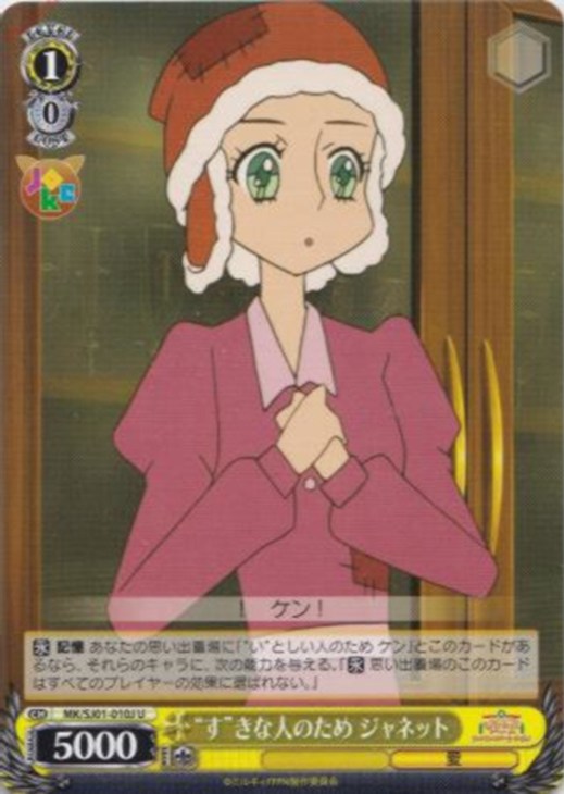 【永】 記憶 あなたの思い出置場に「“い”としい人のため ケン」とこのカードがあるなら、それらのキャラに、次の能力を与える。『【永】 思い出置場のこのカードはすべてのプレイヤーの効果に選ばれない。』