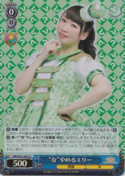 【自】 絆/「“ゆ”うしゅう(?)な探偵 ネロ」 [はずかしそうにモジモジする] (このカードがプレイされて舞台に置かれた時、あなたはコストを払ってよい。そうしたら、あなたは自分の控え室の「“ゆ”うしゅう(?)な探偵 ネロ」を1枚選び、手札に戻す)