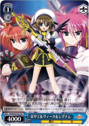 - 【永】相手のターン中、他のあなたの《魔法》のキャラすべてに、パワーを+1000。 フレーバー:シグナム「我ら夜天の主のもとに集いし騎士」ヴィータ「我らが主、夜天の王・・・・・・八神はやての名のもとに!」
