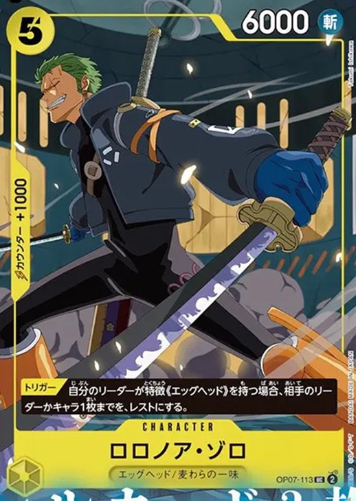 自分のリーダーが特徴《エッグヘッド》を持つ場合、相手のリーダーかキャラ1枚までを、レストにする。