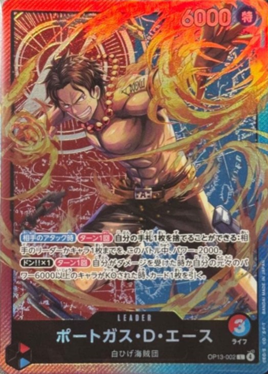 【ドン!!×1】【ターン1回】自分がダメージを受けた時か自分の元々のパワー6000以上のキャラがKOされた時、カード1枚を引く。