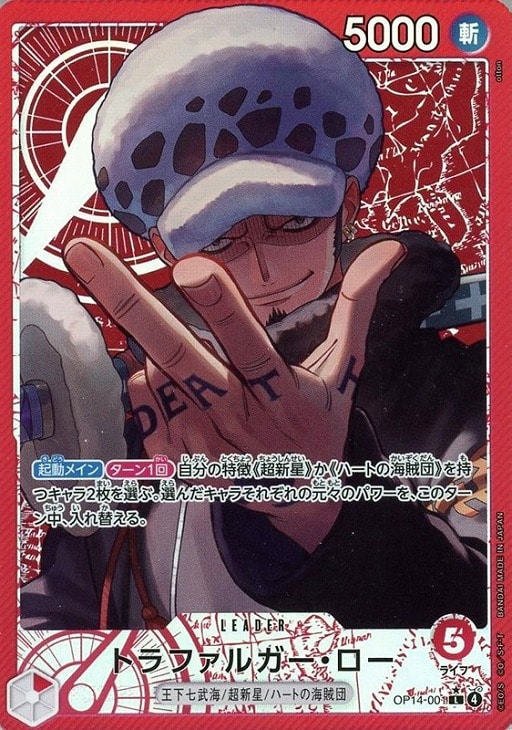 - 【起動メイン】【ターン1回】自分の特徴《超新星》か《ハートの海賊団》を持つキャラ2枚を選ぶ。選んだキャラそれぞれの元々のパワーを、このターン中、入れ替える。