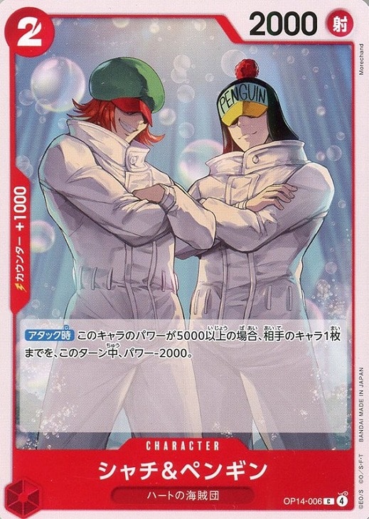 【アタック時】このキャラのパワーが5000以上の場合、相手のキャラ1枚までを、このターン中、パワー-2000。