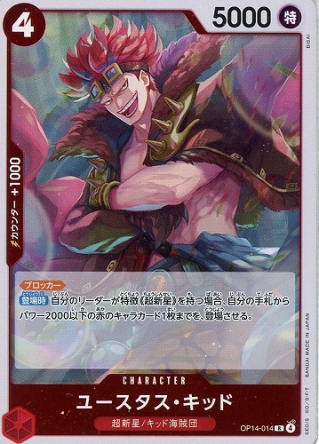 【登場時】自分のリーダーが特徴《超新星》を持つ場合、自分の手札からパワー2000以下の赤のキャラカード1枚までを、登場させる。