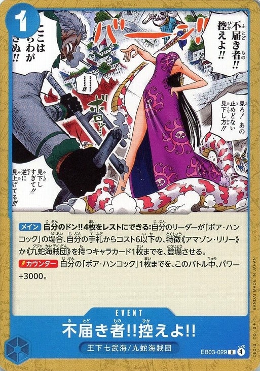 【カウンター】自分の「ボア・ハンコック」1枚までを、このバトル中、パワー+3000。