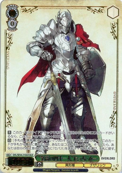【自】[手札の、《異形種》か《ナザリック》のキャラを1枚控え室に置く] このカードが手札から舞台に置かれた時、あなたはコストを払ってよい。そうしたら、あなたは自分の控え室のカード名に「セバス」を含むキャラを1枚選び、手札に戻す。