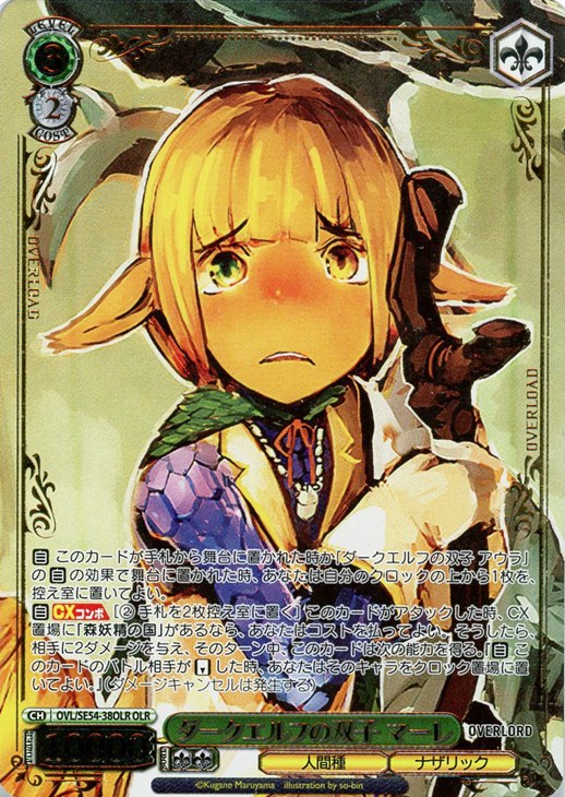 【自】【CXコンボ】[(2) 手札を2枚控え室に置く] このカードがアタックした時、CX置場に「森妖精の国」があるなら、あなたはコストを払ってよい。そうしたら、相手に2ダメージを与え、そのターン中、このカードは次の能力を得る。『【自】 このカードのバトル相手が【リバース】した時、あなたはそのキャラをクロック置場に置いてよい。』(ダメージキャンセルは発生する)