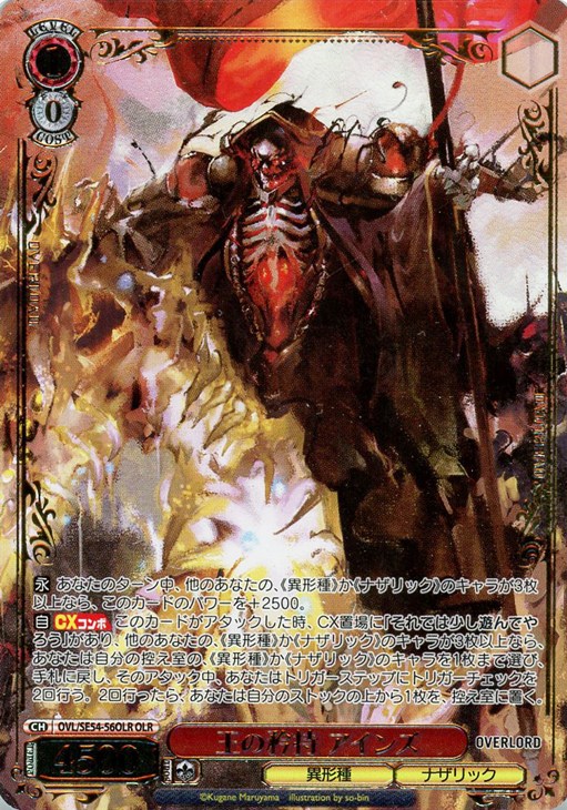 【自】【CXコンボ】 このカードがアタックした時、CX置場に「それでは少し遊んでやろう」があり、他のあなたの、《異形種》か《ナザリック》のキャラが3枚以上なら、あなたは自分の控え室の、《異形種》か《ナザリック》のキャラを1枚まで選び、手札に戻し、そのアタック中、あなたはトリガーステップにトリガーチェックを2回行う。2回行ったら、あなたは自分のストックの上から1枚を、控え室に置く。