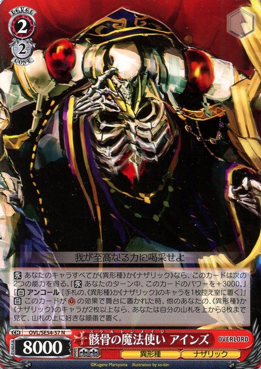 【自】 このカードがスタンバイの効果で舞台に置かれた時、他のあなたの、《異形種》か《ナザリック》のキャラが2枚以上なら、あなたは自分の山札を上から3枚まで見て、山札の上に好きな順番で置く。