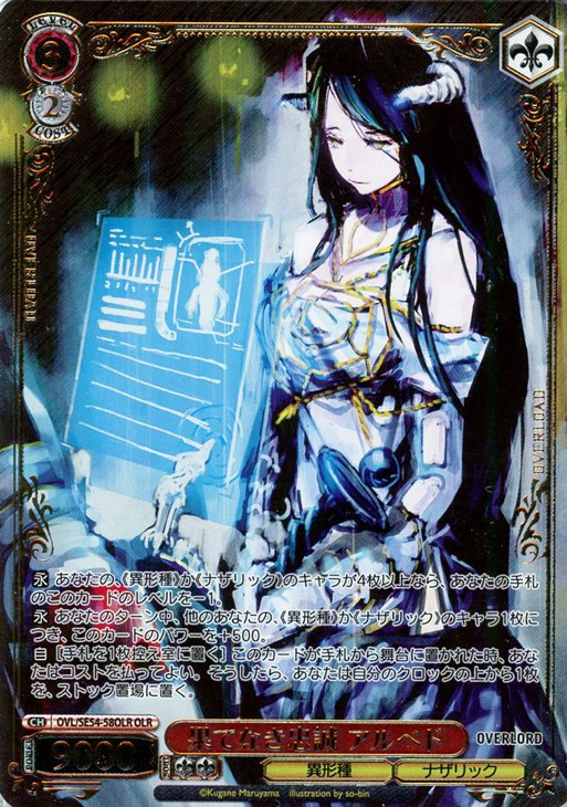 【永】 あなたのターン中、他のあなたの、《異形種》か《ナザリック》のキャラ1枚につき、このカードのパワーを+500。