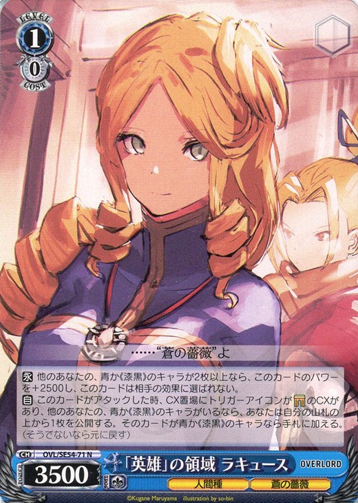 【自】 このカードがアタックした時、CX置場にトリガーアイコンがゲートのCXがあり、他のあなたの、青か《漆黒》のキャラがいるなら、あなたは自分の山札の上から1枚を公開する。そのカードが青か《漆黒》のキャラなら手札に加える。(そうでないなら元に戻す)