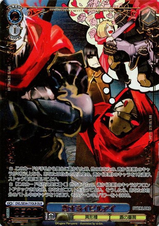 【自】[このカードを控え室に置く] 他のあなたの、青か《漆黒》のキャラがフロントアタックされた時、あなたはコストを払ってよい。そうしたら、あなたは自分のバトル中のキャラを1枚選び、そのターン中、パワーを+3000。