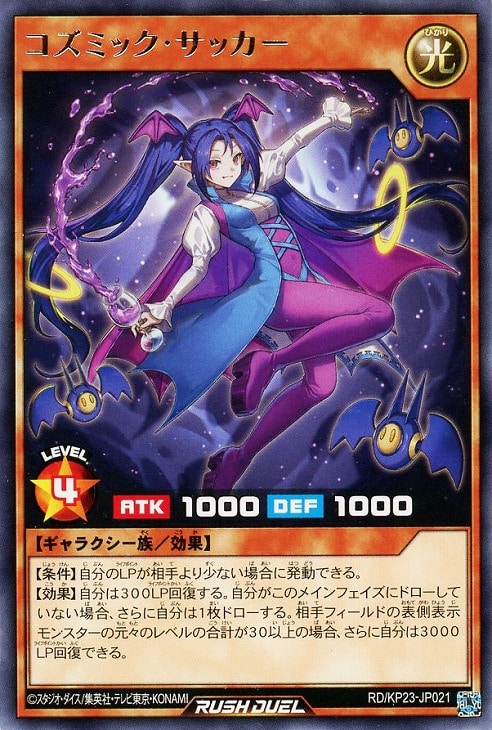【効果】自分は300LP回復する。自分がこのメインフェイズにドローしていない場合、さらに自分は1枚ドローする。相手フィールドの表側表示モンスターの元々のレベルの合計が30以上の場合、さらに自分は3000LP回復できる。