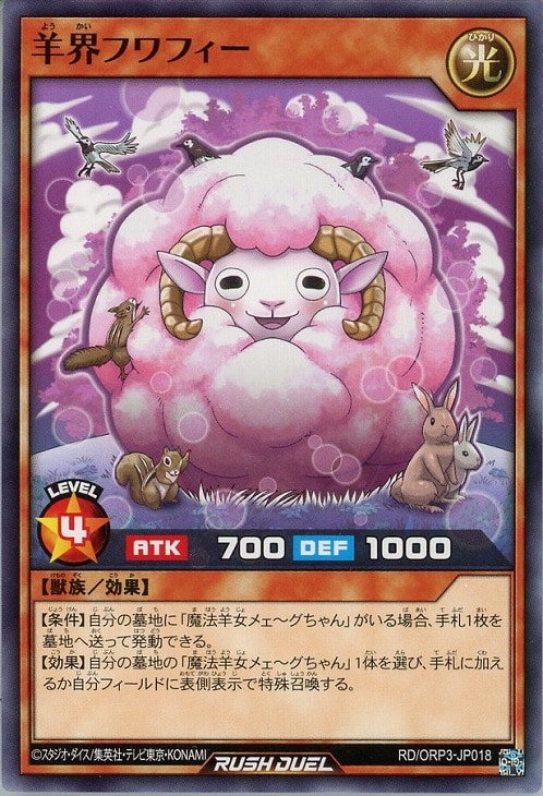 【効果】自分の墓地の「魔法羊女メェ~グちゃん」1体を選び、手札に加えるか自分フィールドに表側表示で特殊召喚する。