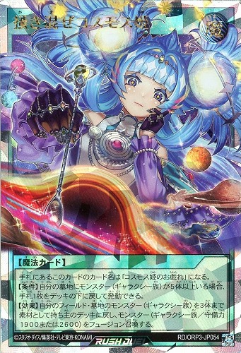 【効果】自分のフィールド・墓地のモンスター(ギャラクシー族)を3体まで素材として持ち主のデッキに戻し、モンスター(ギャラクシー族/守備力1900または2600)をフュージョン召喚する。