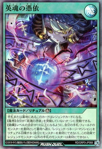 【効果】レベルの合計が10以上になるように、自分の手札・フィールドのモンスターを素材として墓地へ送り、「レジェンド・リネージ・マジシャン」をリチュアル召喚する(余分にモンスターを素材にできない)。この効果でレジェンドモンスター以外の手札のモンスターは素材にできない。