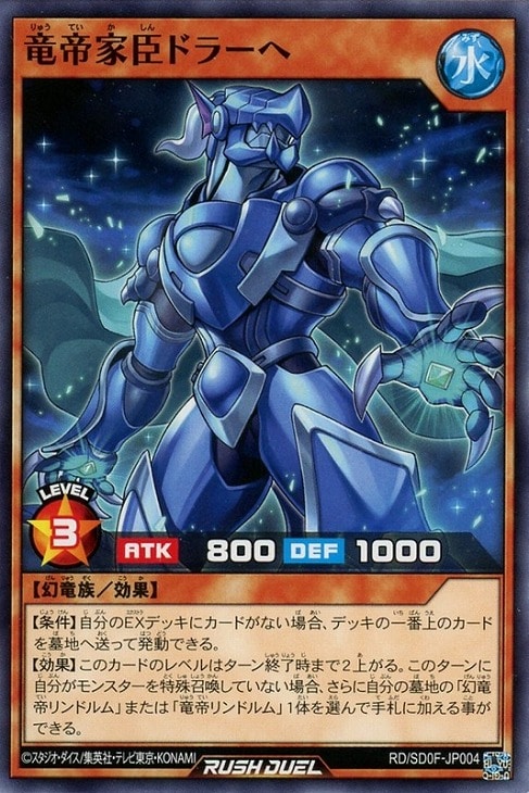 【効果】このカードのレベルはターン終了時まで2上がる。このターンに自分がモンスターを特殊召喚していない場合、さらに自分の墓地の「幻竜帝リンドルム」または「竜帝リンドルム」1体を選んで手札に加える事ができる。