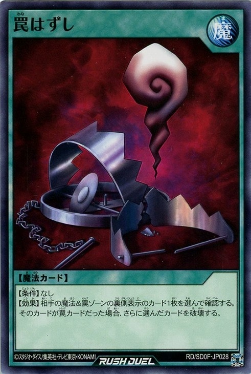 【効果】相手の魔法&罠ゾーンの裏側表示のカード1枚を選んで確認する。そのカードが罠カードだった場合、さらに選んだカードを破壊する。