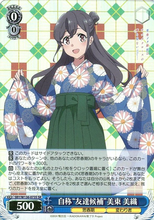 【永】 あなたのターン中、他のあなたの《思春期》のキャラがいるなら、このカードのパワーを+3000。