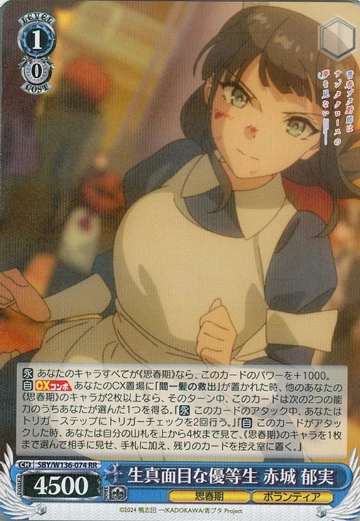 【永】 あなたのキャラすべてが《思春期》なら、このカードのパワーを+1000。